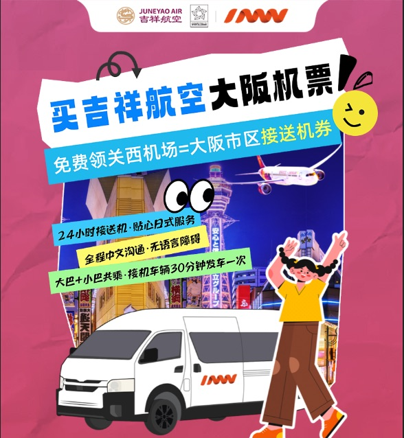 即日起購買吉祥航空前往日本大阪的旅客 可享受INNN空港“門到門”免費接送服務(wù)