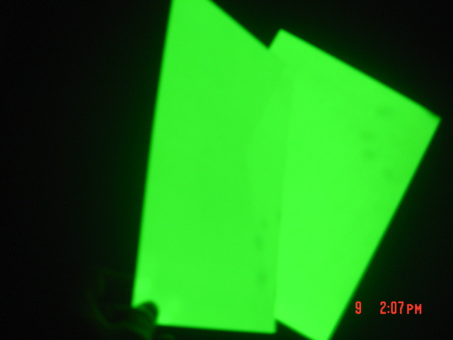 夜光板是用高亮夜光粉與PVC樹脂材料混合后制作完成,是種硬質(zhì)的發(fā)光板材,可以切割成不同的規(guī)格,可以在表面進(jìn)行絲網(wǎng)印刷,制作成各種蓄光自發(fā)光導(dǎo)向標(biāo)示系統(tǒng)。目前這種板主要出口到歐美等市場(chǎng),制作的消防標(biāo)示符合歐盟標(biāo)準(zhǔn)。材料具有一定的阻燃性能。