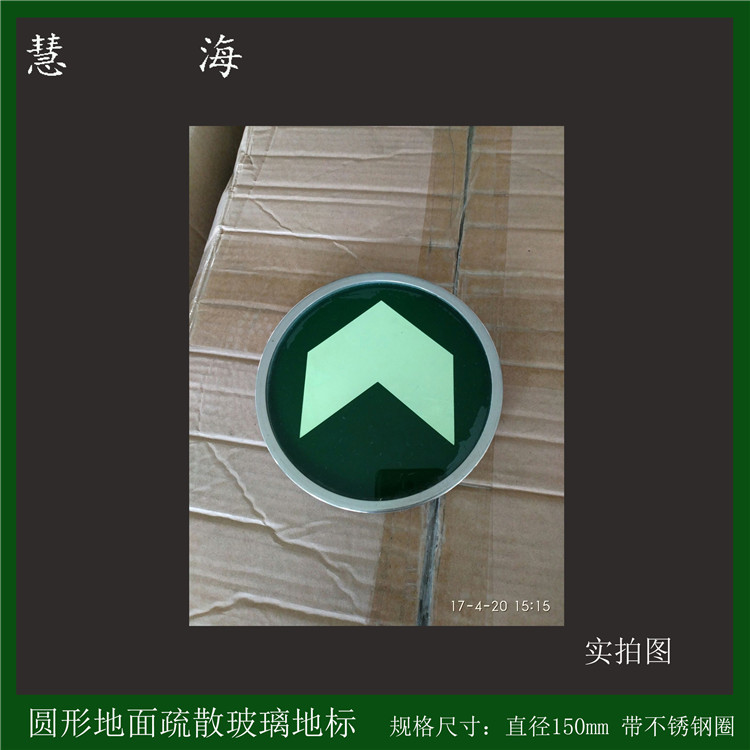 產(chǎn)品詳情供應(yīng)發(fā)光圓形鋼化玻璃地貼,自發(fā)光嵌地出口指示 熒光地貼特點:采用上下雙層鋼化玻璃,比一般的玻璃地標(biāo)要牢固多倍(普通的地標(biāo)只有上層是鋼化玻璃,而下層是普通玻璃),蓄光夾片采用的事高亮度的全夜光鋁板制成。進(jìn)爐抽真空夾膠,防水防潮等級可達(dá)IP68,使用幾十年都無需更換。后加上304不銹鋼的鋼圈包邊(市面上普通的地標(biāo)用的都是201不銹鋼),光澤亮麗,美觀又安全,物超所值!