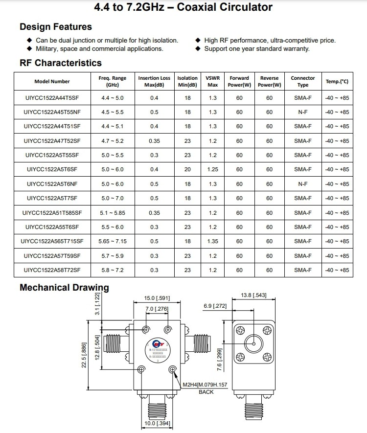4.4-7.2GHz同軸環(huán)行器